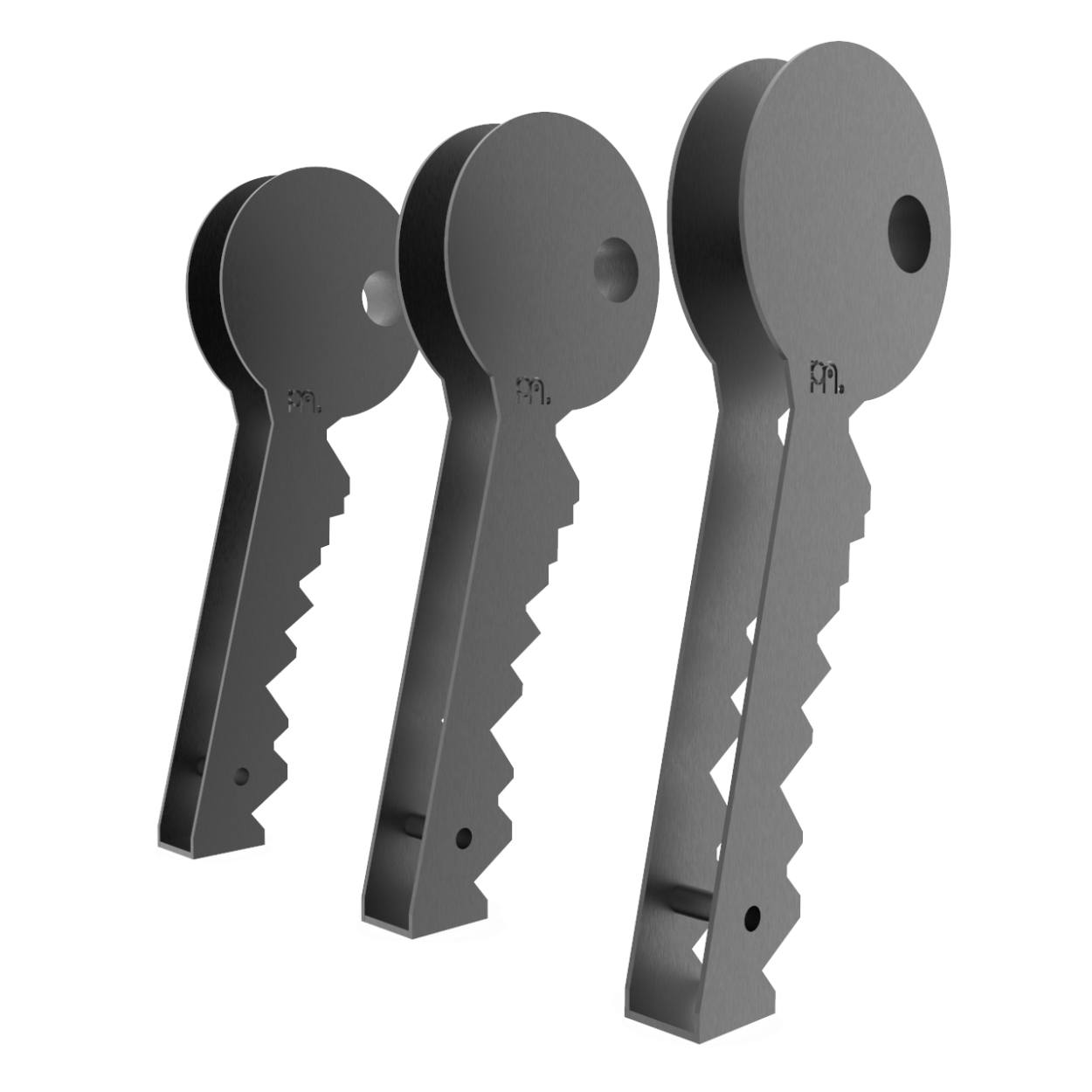 Μεταλλικό stand ποδηλάτων σε σχήμα κλειδιού σετ (3 τεμ.) ύψους 901mm και συνολικού μήκους 1390mm. Ο λειτουργικος σχεδιασμός του επιτρέπει το άνετο παρκάρισμα των ποδηλάτων χωρίς το κίνδυνο να χτυπιούνται τα τιμόνια μεταξύ τους. Το stand τοποθετείται σε βάση από μπετό με μεταλλικά βύσματα (express). Υπάρχει δυνατότητα επιλογής υλικού (χάλυβας, γαλβανιζέ, inox) ανάλογα με τις συνθήκες του κάθε χώρου τοποθέτησης. Στη συσκευασία περιλαμβάνονται και τα υλικά στερέωσης.