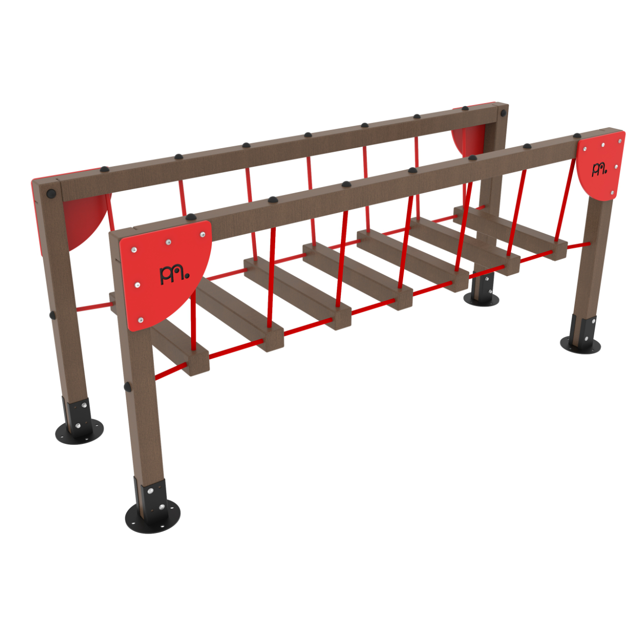 καταλήγουν σε επτά ξύλινα πατήματα διαστάσεων 95x95x760 mm, σε ύψος 400mm από το έδαφος. Τα άκρα των