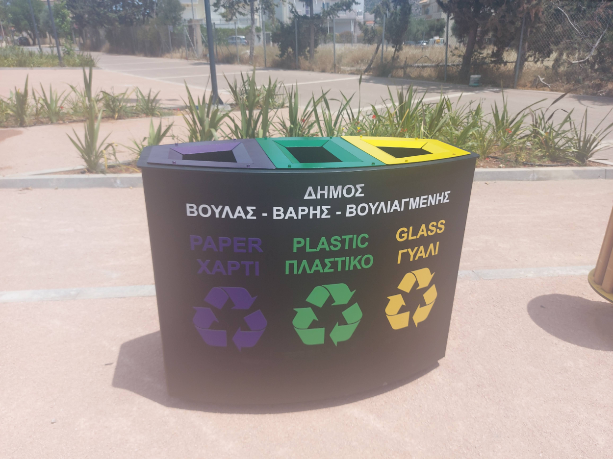 Μεταλλικός οβάλ κάδος ανακύκλωσης χωρητικότητας ~350lt. Τα μεταλλικά στοιχεία του εξοπλισμού είναι κατάλληλα για εξωτερική χρήση μη τοξικά και μη αναφλέξιμα σύμφωνα με τις προδιαγραφές της Ευρωπαϊκής Ένωσης. Ο κάδος τοποθετείται σε βάση από μπετό με μεταλλικά βύσματα (express). Υπάρχει δυνατότητα επιλογής χρώματος και μετάλλου.