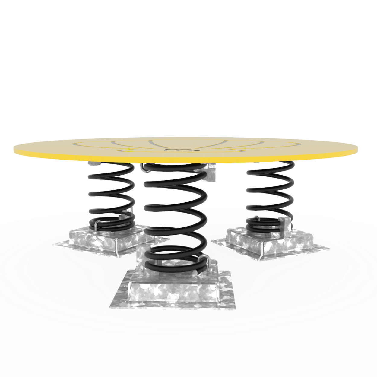 Το κυρίως όργανο αποτελείται από ένα τεμάχιο από HDPE πάχους 15mm, τα οποία συναρμολογούμενα μεταξύ τους μας δίνουν την τελική μορφή του οργάνου. Στο κάτω σημείο του προσαρμόζονται τρία ελατήρια με την μεταλλική βάση πάκτωσης. Τα ελατήρια είναι κατηγορίας ελατηρίων πιέσεως με σπείρες, και είναι δοκιμασμένα για μεγαλες αντοχες και με τρόπο που να αποκλείει τον εγκλωβισμό των άκρων του παιδιού. Συνδέονται με το κυρίως όργανο με βάση συγκράτησης (φλατζα σιδερενια). Τα μεταλλικά μέρη είναι βαμμένα ηλεκτροστατικά για μέγιστη αντοχή στις καιρικές συνθήκες. Τα βερνίκια και τα χρώματα που χρησιμοποιούνται έχουν σαν βάση το νερό-μη τοξικά (χωρίς χρώμιο)- και είναι κατάλληλα και ασφαλή για τα παιδιά. Σχεδιασμένο σύμφωνα με το πρότυπο EN 1176-1 . Υπάρχει δυνατότητα επιλογής χρώματος, ξυλείας και μετάλλου.