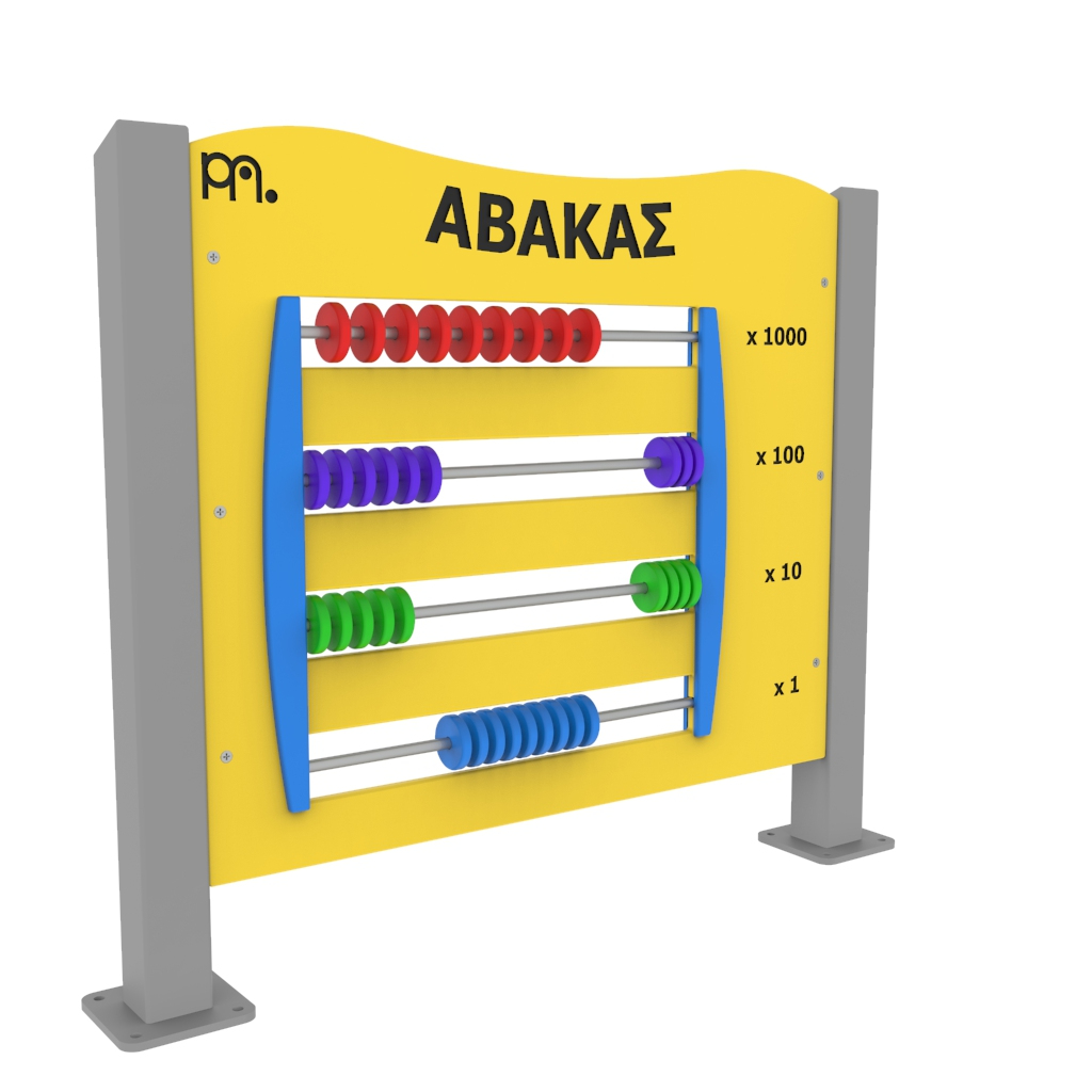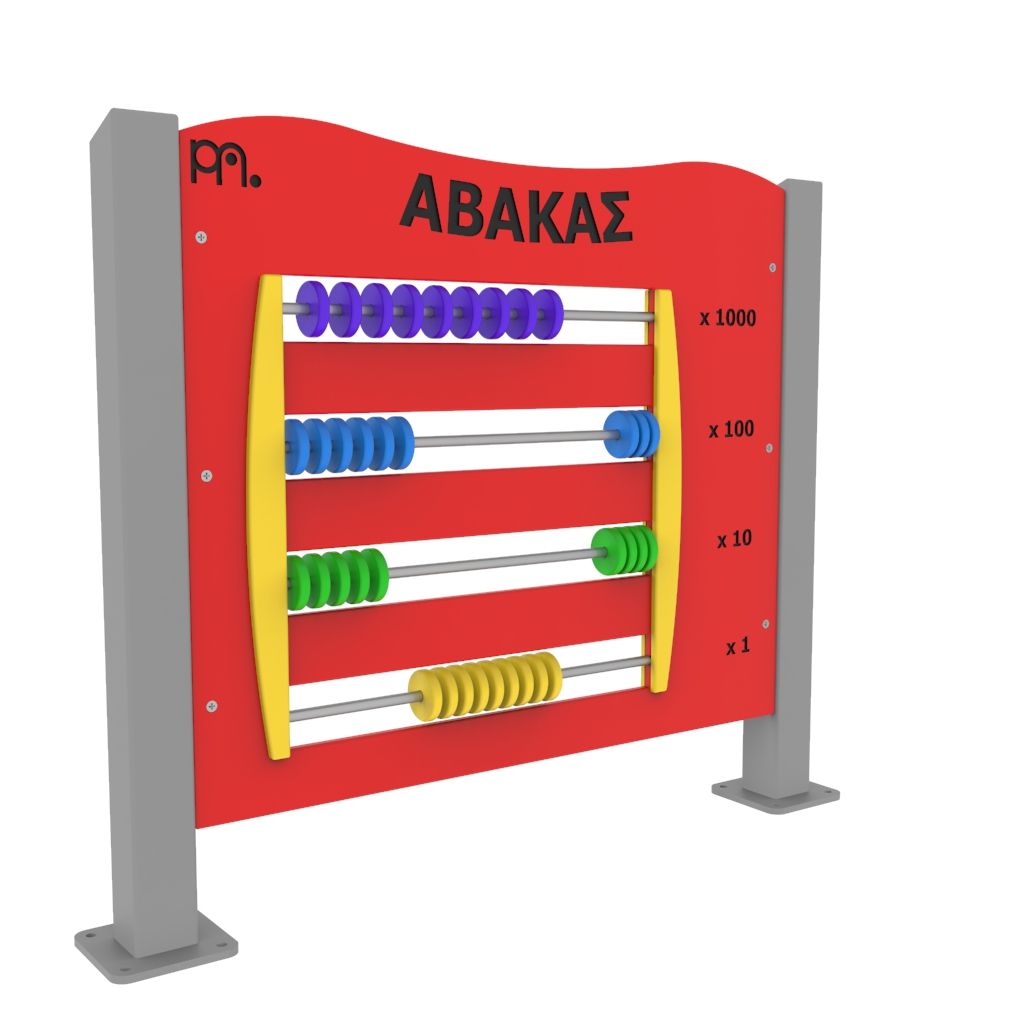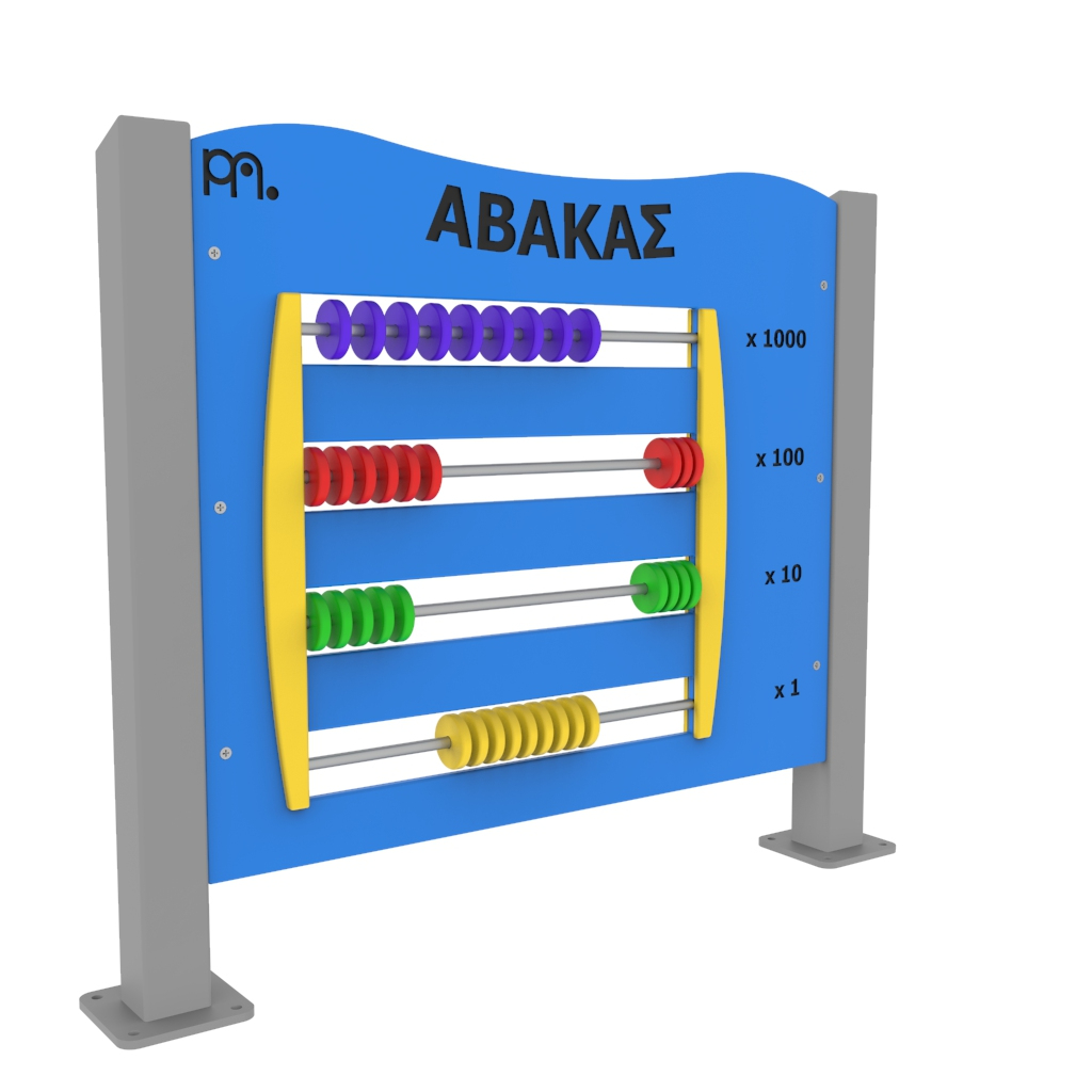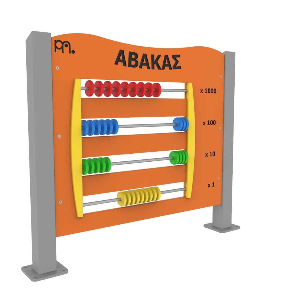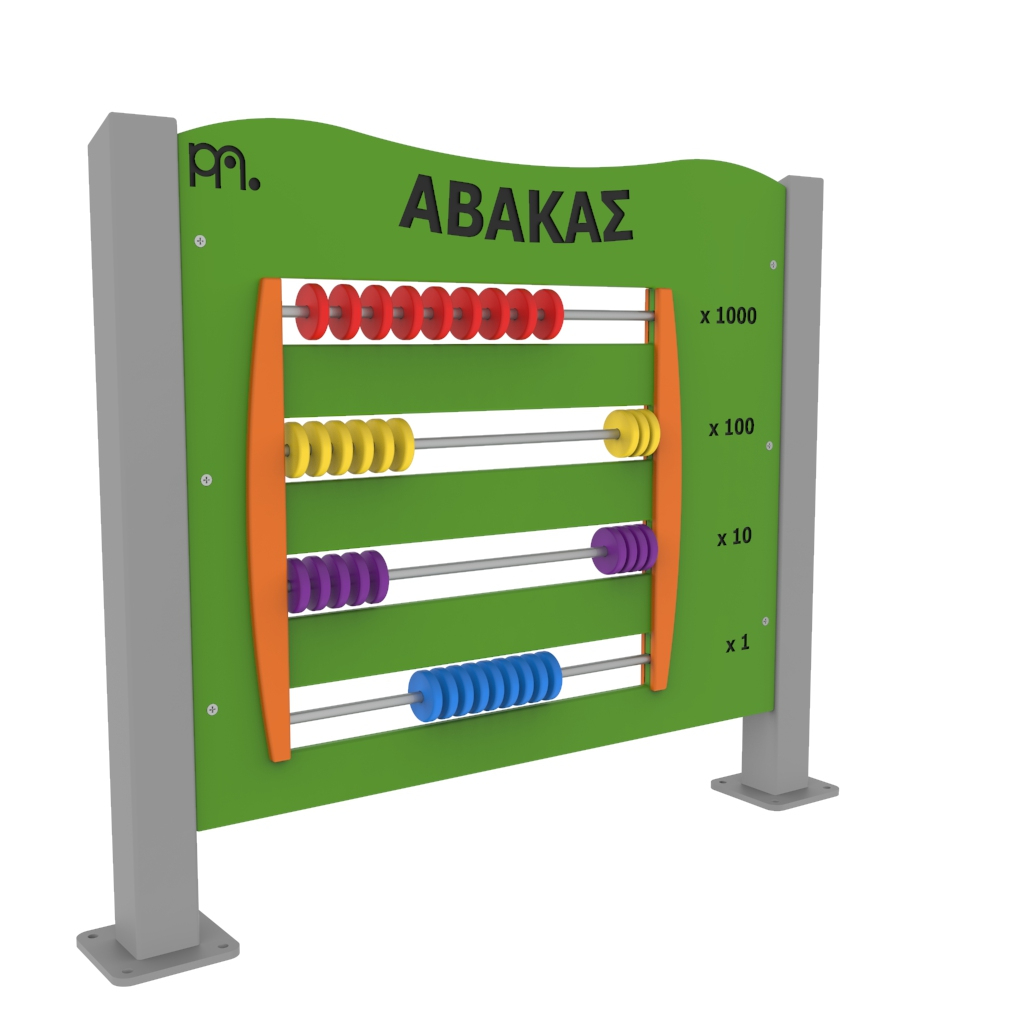 Πάνελ δραστηριοτήτων άβακας κατασκευασμένο από μεταλλικό σκελετό και φύλλο HDPE (High-Density Polyethylene) πάχους 15mm. Υπάρχει δυνατότητα επιλογής χρώματος HDPE (κόκκινο,πράσινο, μπλε, λευκό, κίτρινο) και υλικού (χάλυβα, γαλβανιζέ και inox) ανάλογα με τις ανάγκες του χώρου σας. Τα μεταλλικά στοιχεία του εξοπλισμού είναι κατάλληλα για εξωτερική χρήση μη τοξικά και μη αναφλέξιμα σύμφωνα με τις προδιαγραφές της Ευρωπαϊκής Ένωσης. Δεν περιέχουν μόλυβδο, χρώμιο, κάδμιο ή άλλα βαρέα μέταλλα. Το πάνελ δραστηριοτήτων κατασκευάζεται σύμφωνα με το πρότυπο ασφαλείας ΕΝ 1176-1. Tο όργανο τοποθετείται σε βάση από μπετό με μεταλλικά βύσματα (express).